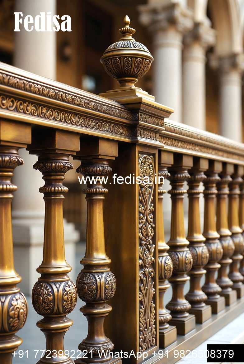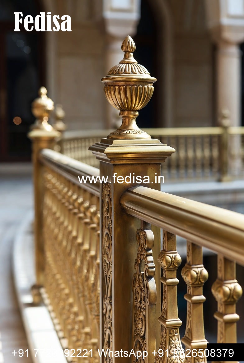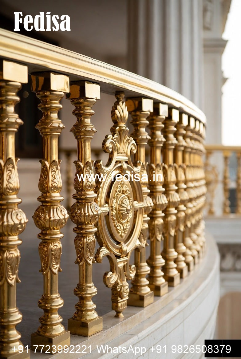 Luxury Brass Balcony Railing With Classic Style Cement Railing Design For Stairs