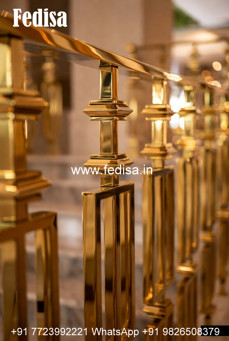 Decorative Brass Railing Design With Floral Patterns Stair Design For Small House