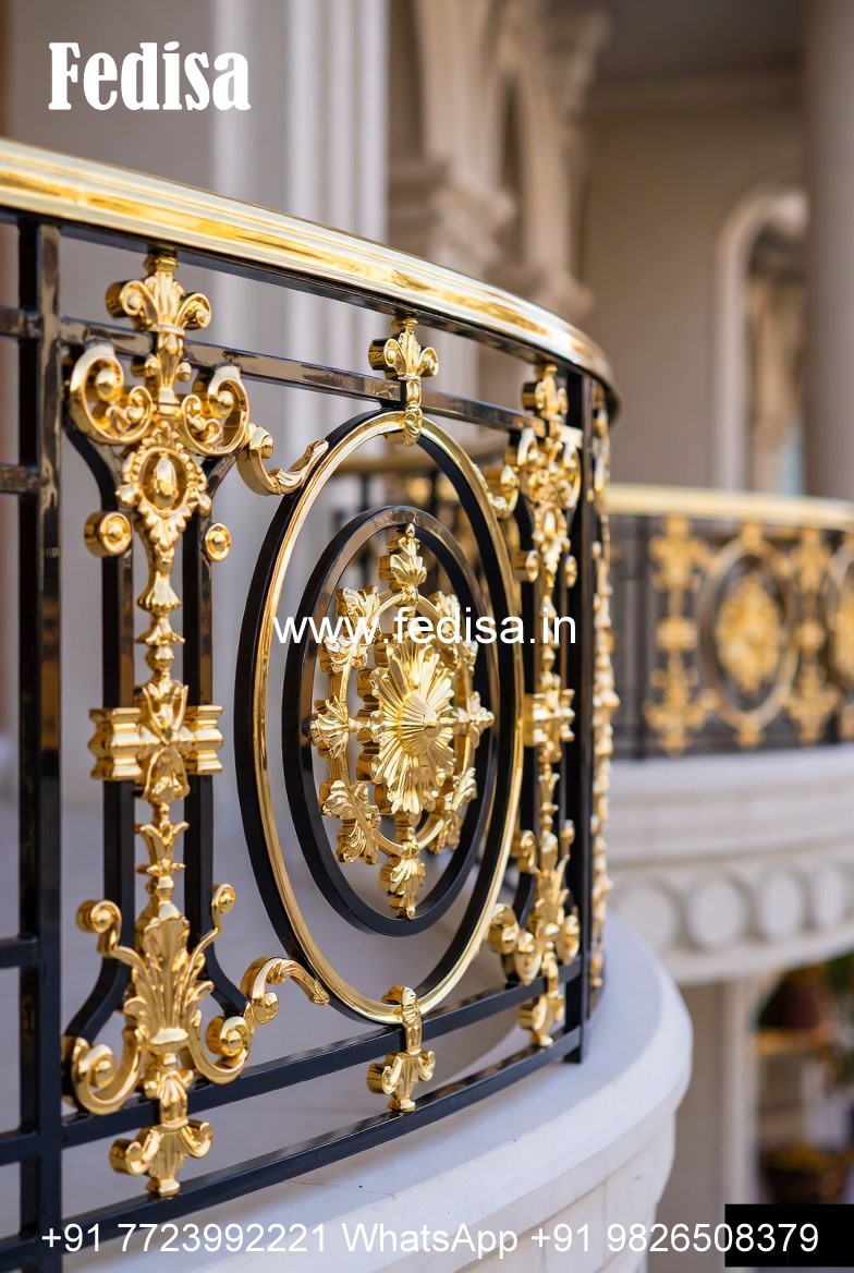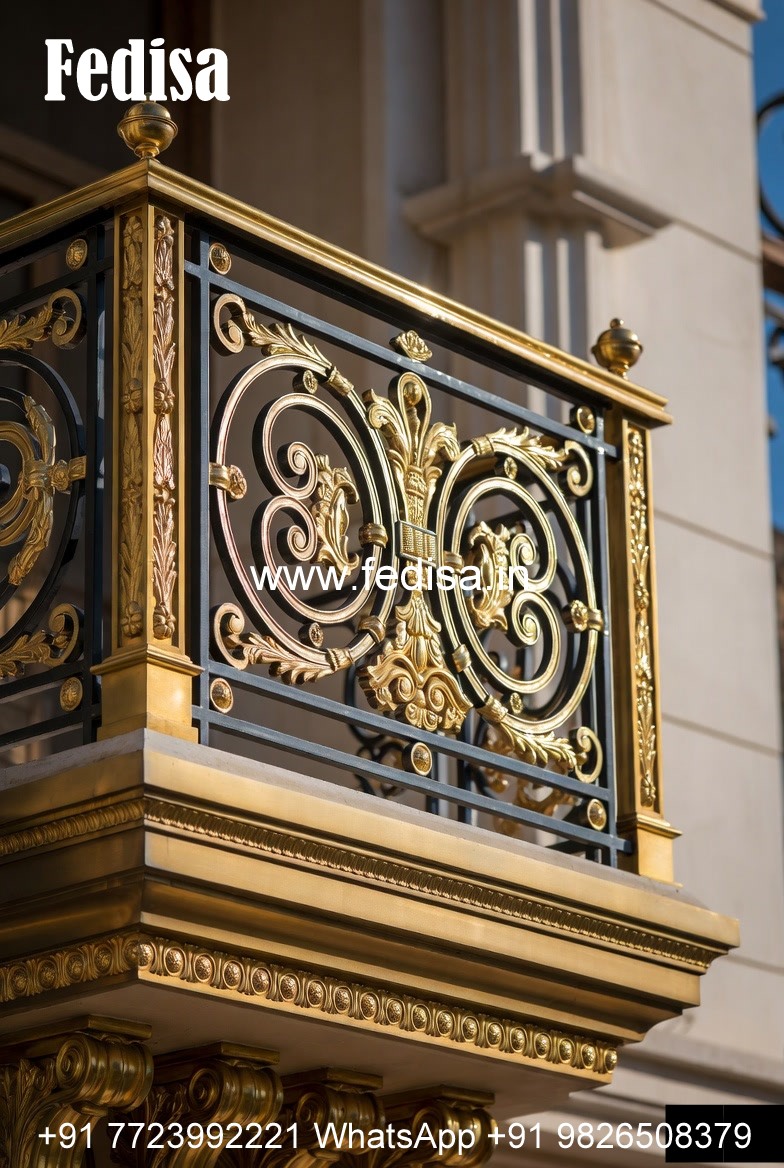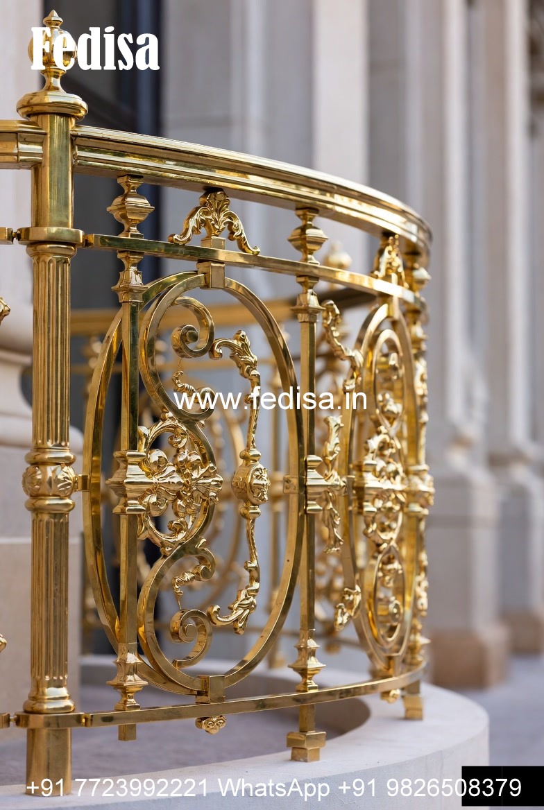 Luxury Brass Railing Design With Gold Finish Arch Staircase Design