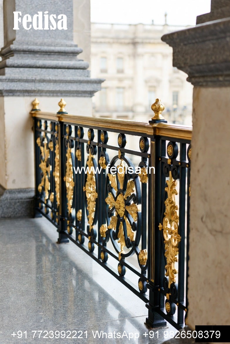 Brass Balcony Railing Design With Decorative Finish Stairs Pop Design