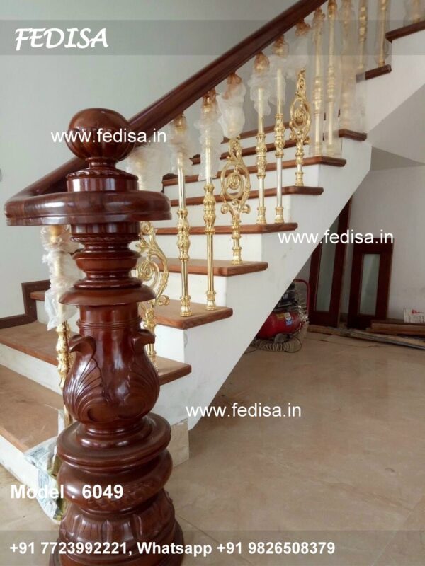 लक्जरी क्लासिक गढ़ा लोहे और लकड़ी की सीढ़ियाँ सुंदर लकड़ी की सीढ़ियाँ गोल लकड़ी की सीढ़ी रेलिंग