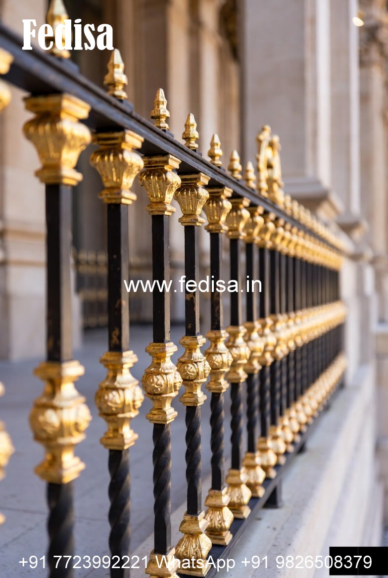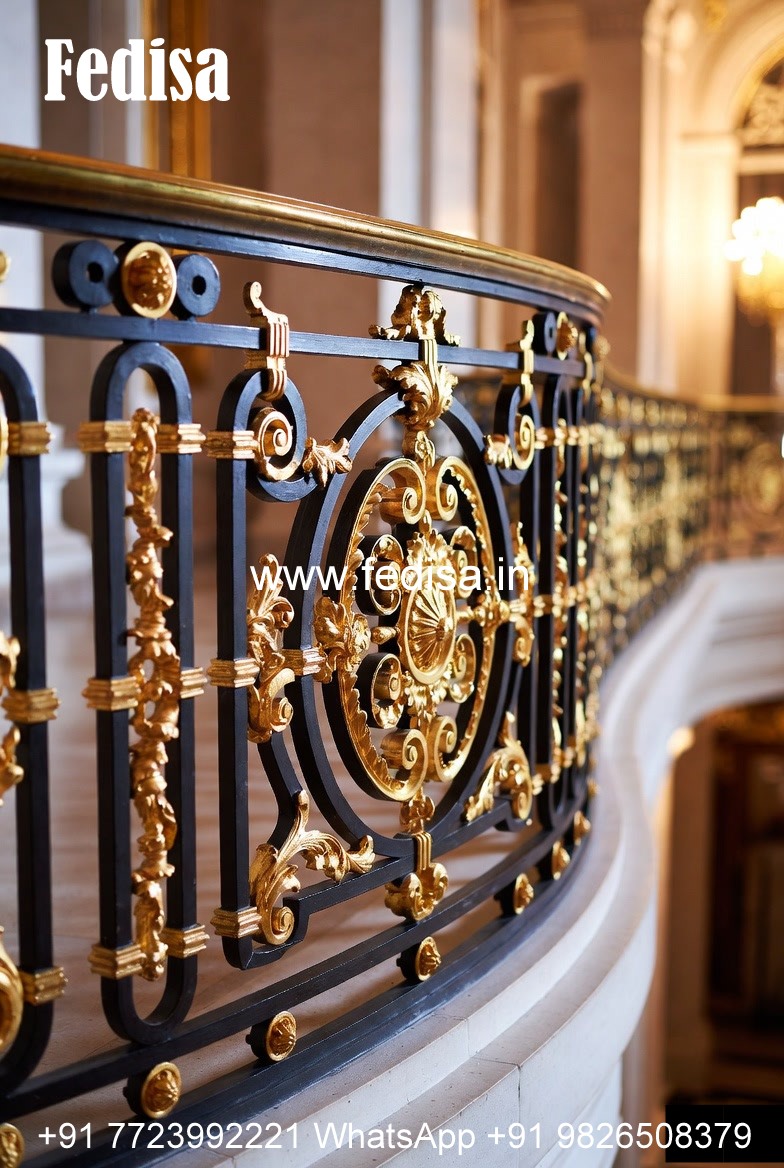 Modern Brass Railing Design For Staircase Front Side Window Grill Design