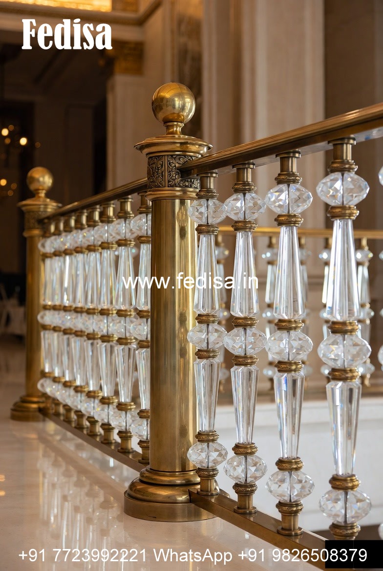 Modern Brass Staircase Railing With Glass Inserts Grill Color
