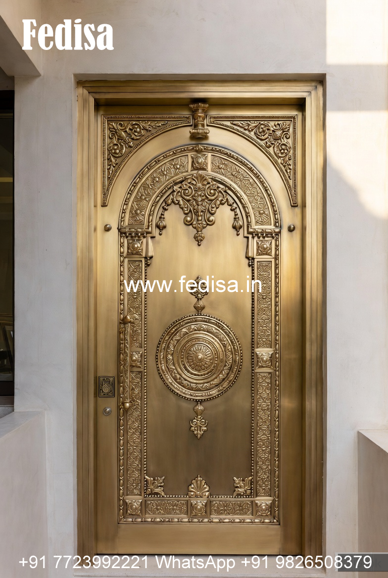 Modern Brass Staircase Railing With Glass Inserts MS Grill Door Design