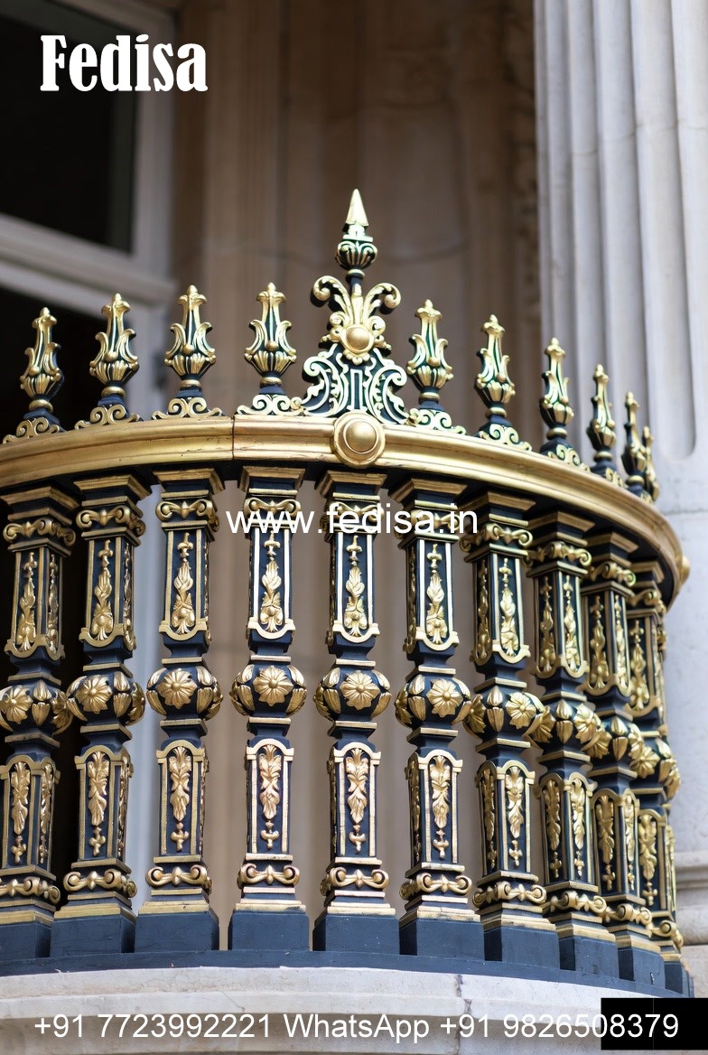 Modern Brass Staircase Railing With Premium Look Windows With Iron Grill Design