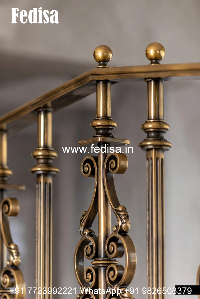 Decorative Brass Railing Design With Floral Patterns Stair Design For Small House
