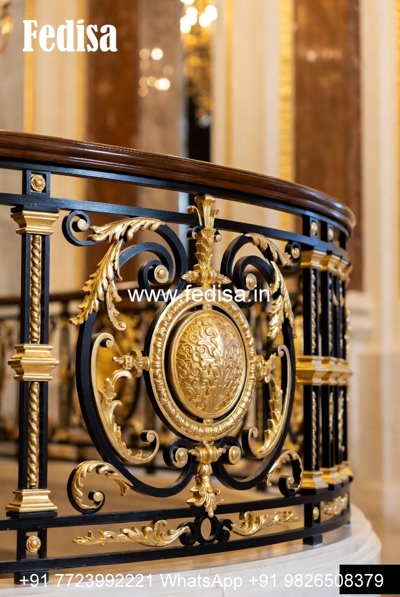 Brass Balcony Railing Design With Decorative Finish Stairs Pop Design