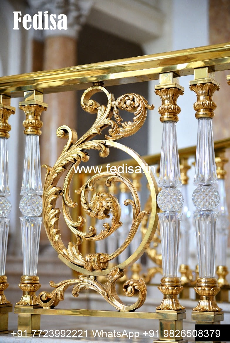 Premium Brass Balcony Railing With Artistic Work New Home Front Railing Design