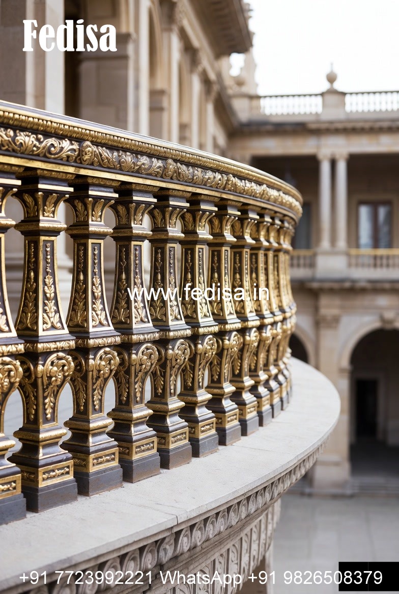 Premium Brass Balcony Railing With Fine Finish Middle Staircase Design