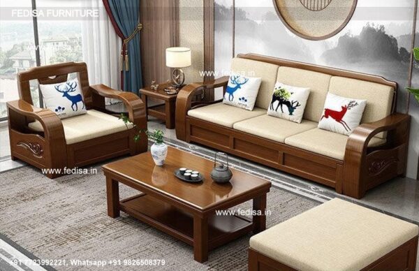 टेबल के साथ लकड़ी का सोफा सेट, सेकेंड हैंड सोफा सेट ओएलएक्स सोफा सेट कुशन के साथ 3 सीटर 2 सीटर सोफा सेट