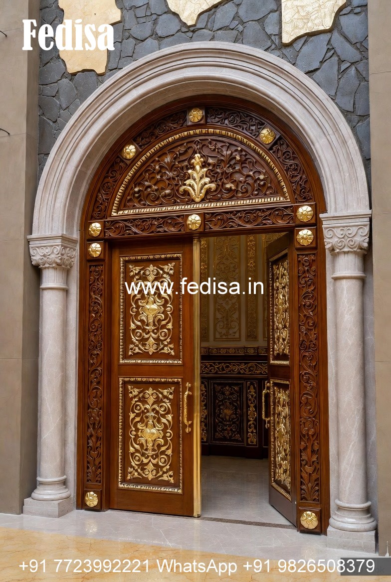 Solid Wood Classic Door Pooja Room Door Design With Bells No-13958