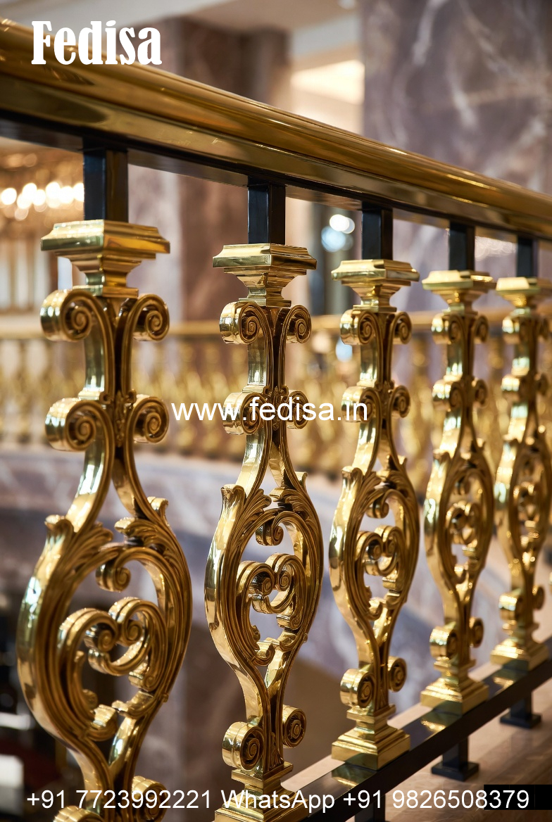 Stylish Brass Handrail Design For Staircase Double Molding Marble Stairs