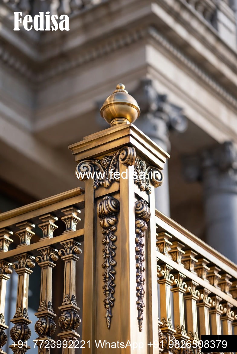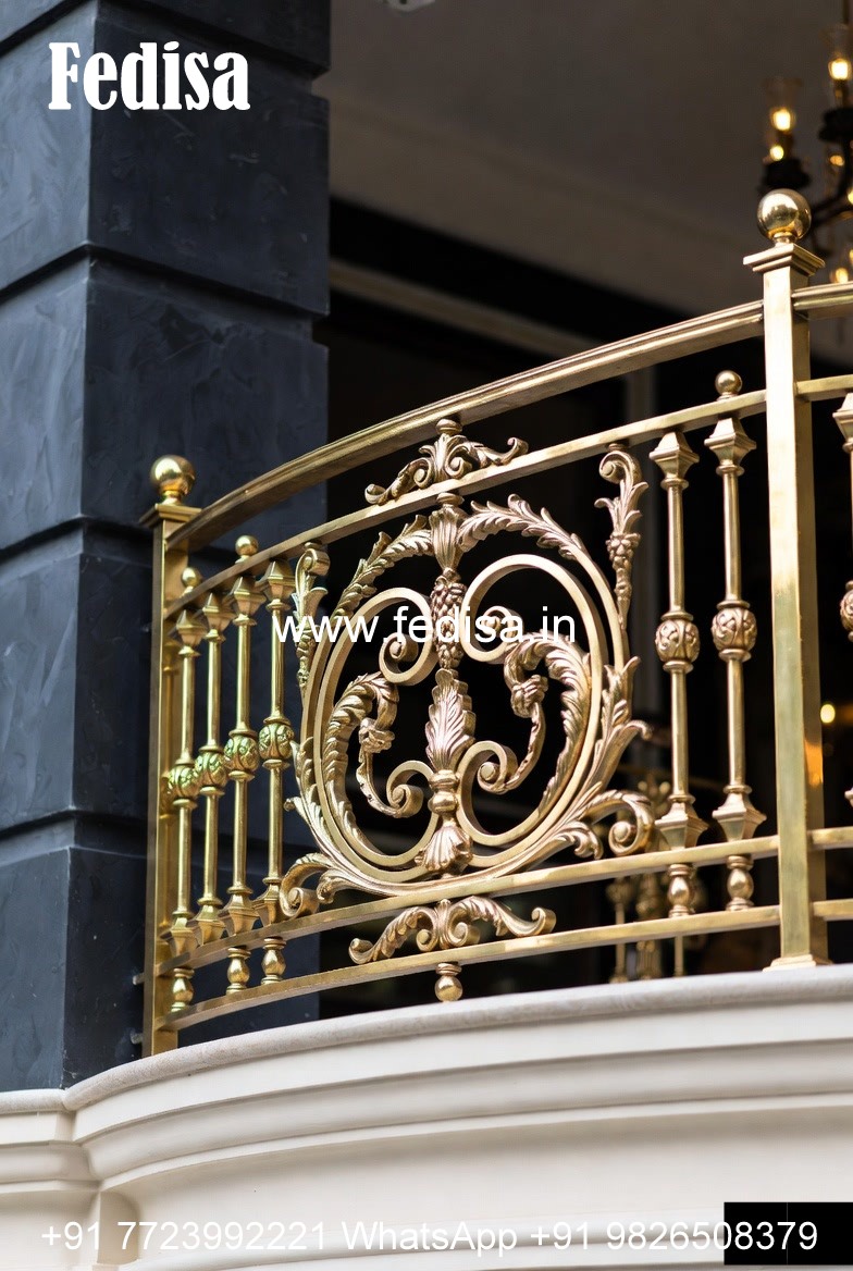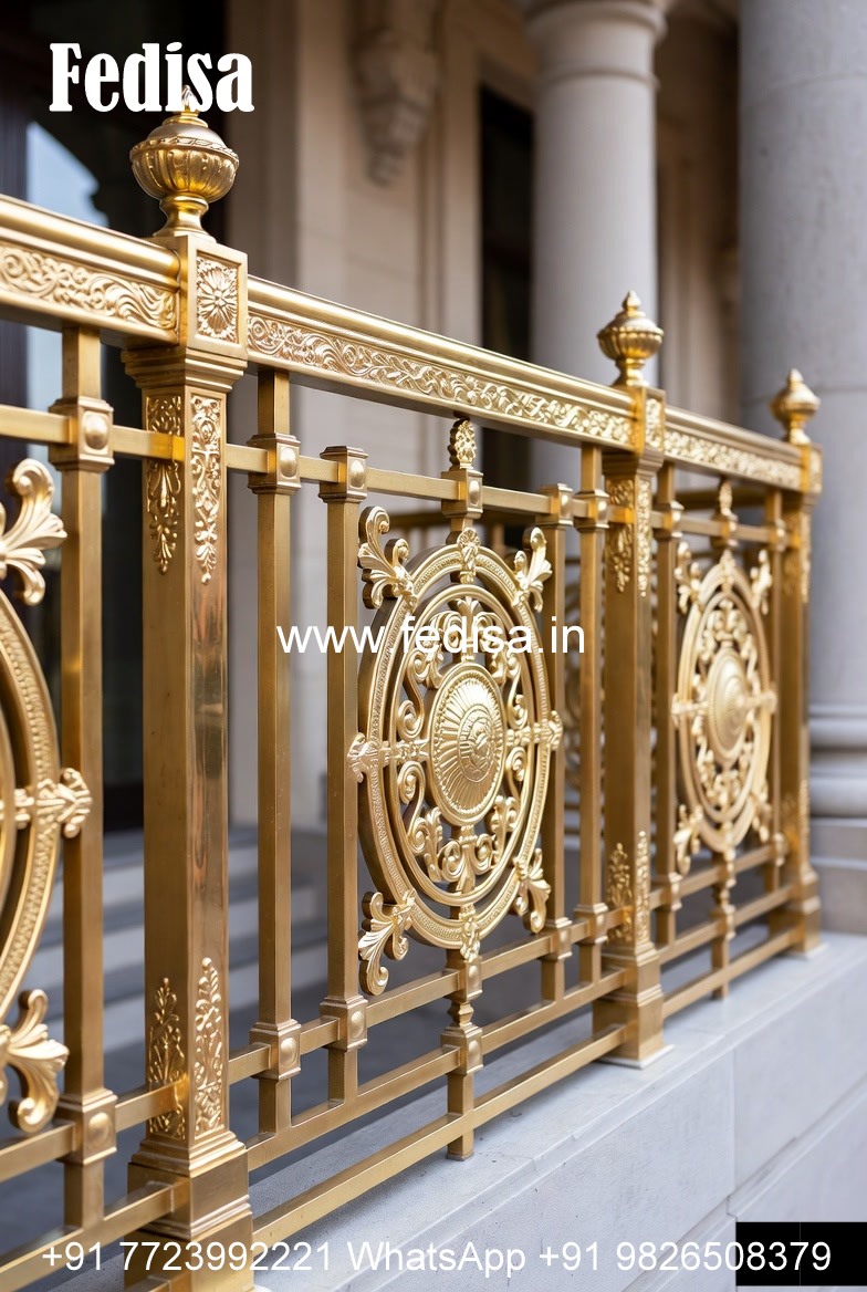 Traditional Brass Railing Design With Carving Work Outside Stairs Design For Indian Houses