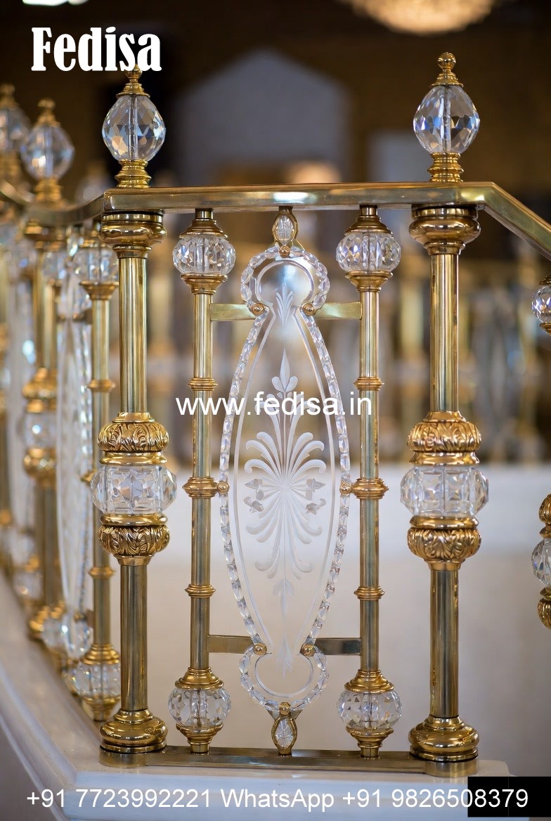 Traditional Brass Railing Design With Carving Work Outside Stairs Design For Indian Houses