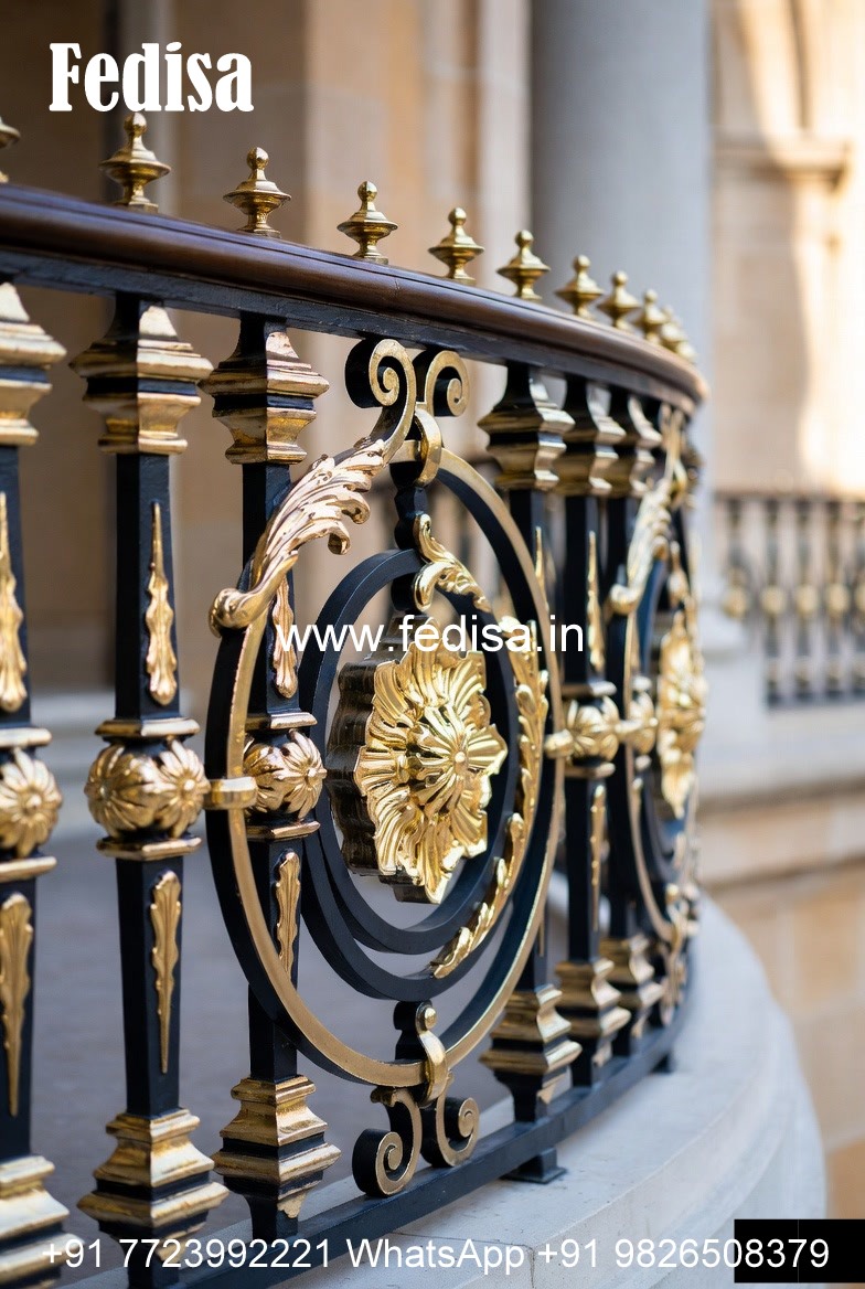 Brass Balcony Railing Design With Decorative Finish Stairs Pop Design