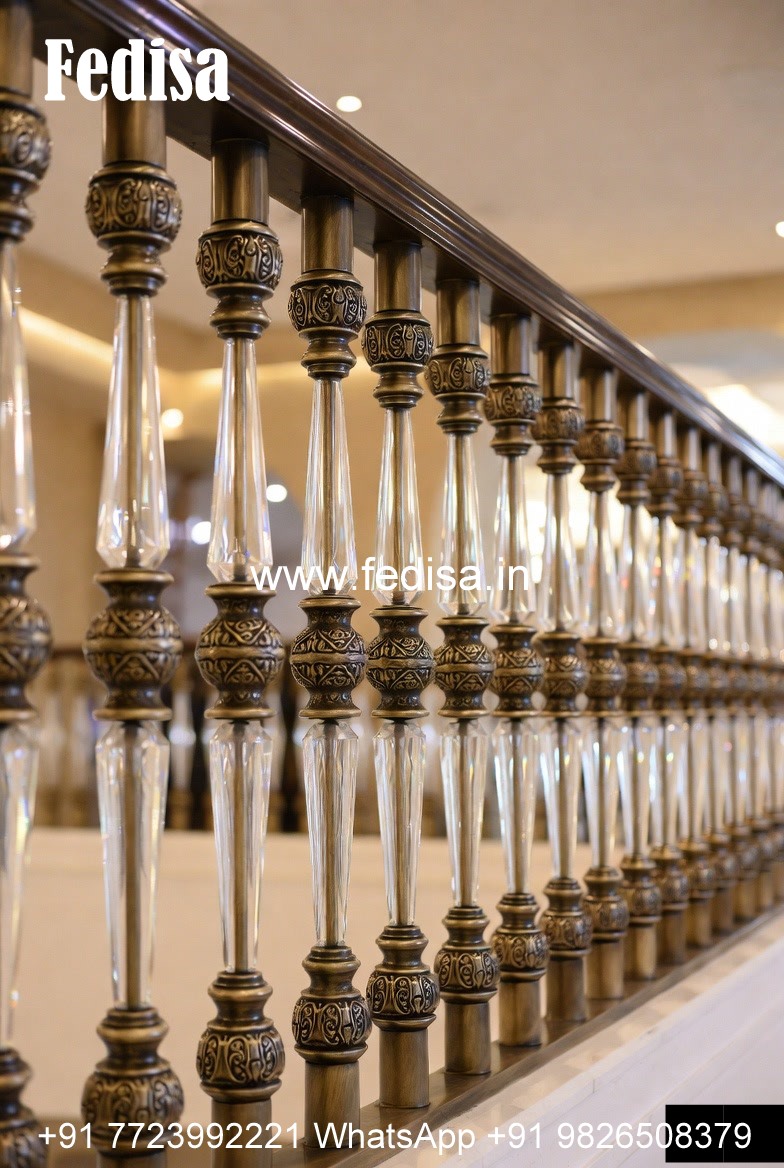 Stylish Brass Staircase Railing For Luxury Villas Steel With Glass Railing Design