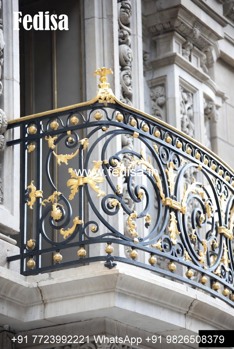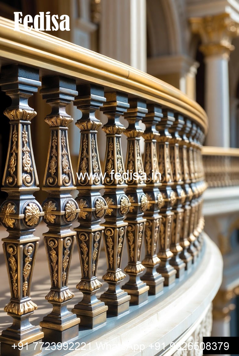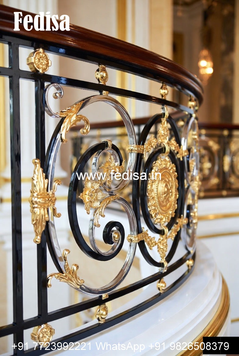 Stylish Brass Staircase Railing With Decorative Elements Grill Gate Main Door