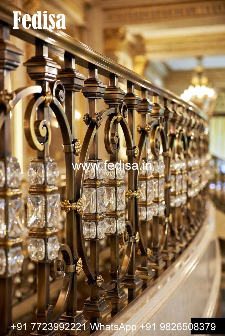 Stylish Brass Staircase Railing With Decorative Elements Railing Front Design