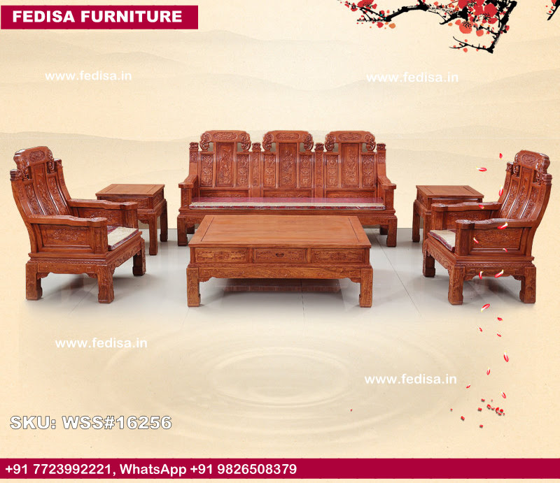 लकड़ी का सोफा सेट, आरामदायक लिविंग रूम सेट, छह सीटों वाला कॉर्नर सोफा, क्लासिक सोफा सेट लिविंग रूम