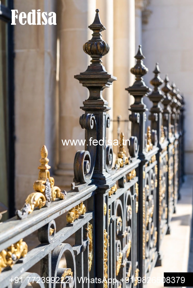 Traditional Brass Railing Design With Engraving Compound Wall Iron Grill