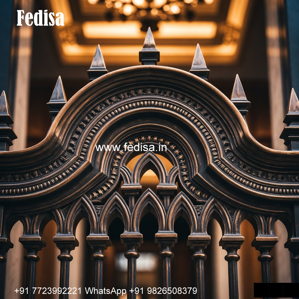Traditional Brass Railing Design With Carving Work Double Door Grill Gate Design