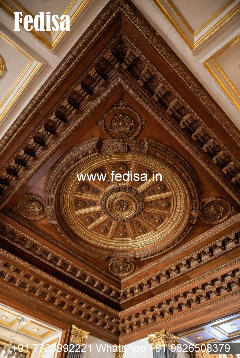 Wooden Ceiling Design Lobby Modern Pop Plus Minus Design No-9186