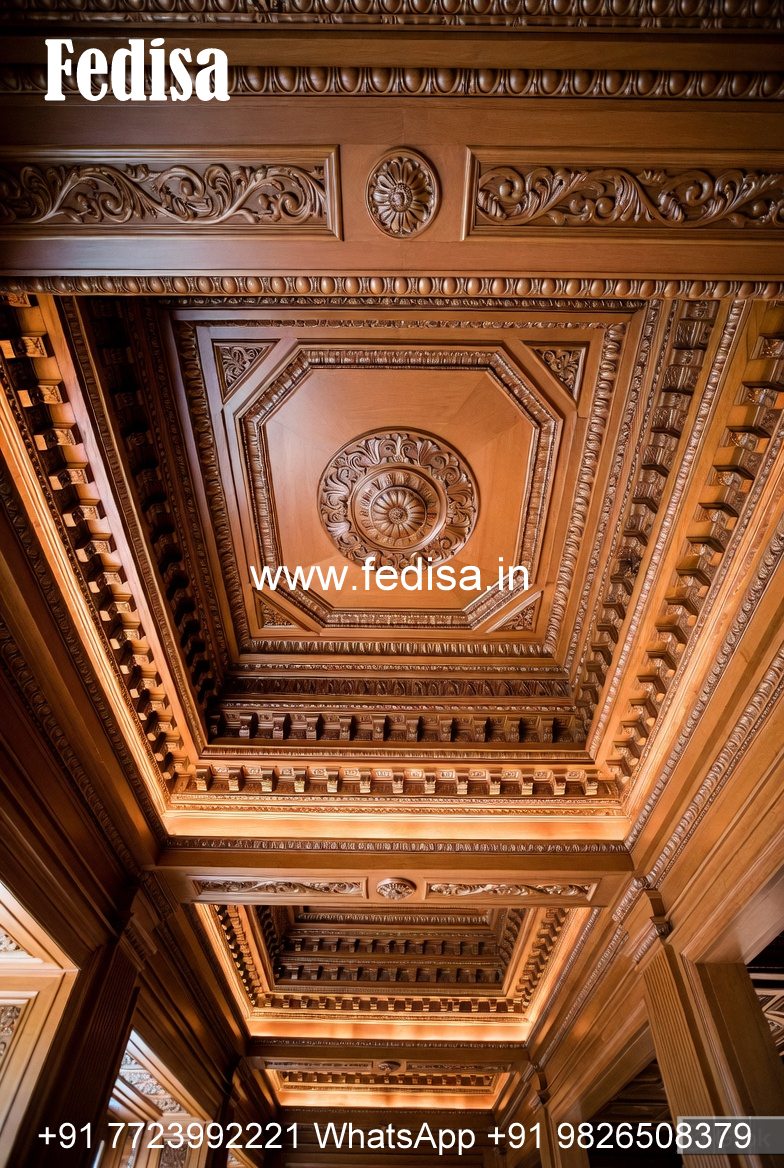 Wooden Ceiling Design Pop Design For 2 Fans No-11612