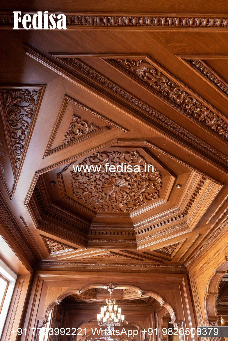 Wooden Ceiling Design Pop Design Hall 2 Fan No-10346