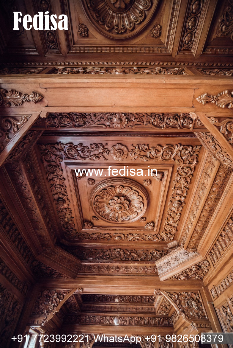 Wooden Ceiling Design Pop Flower Design On Wall No-10862