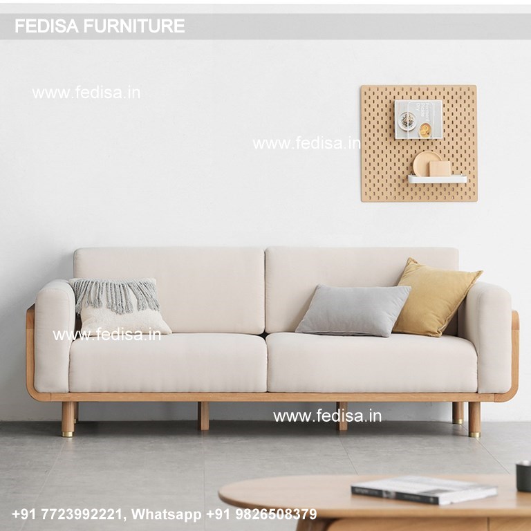 लकड़ी का सोफा यू आकार का सेक्शनल सोफा बेज लिविंग रूम सेट नई शैली का सोफा सेट